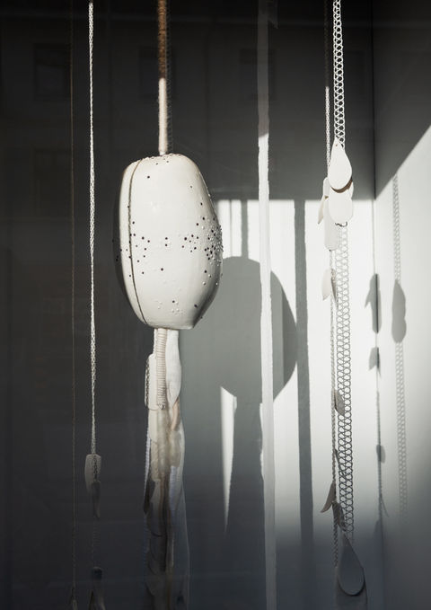 La majorité de ses créations sont en suspension, cette mise en œuvre faisant référence au fait que malgré sa complexité, la vie ne tient qu'à un fil.